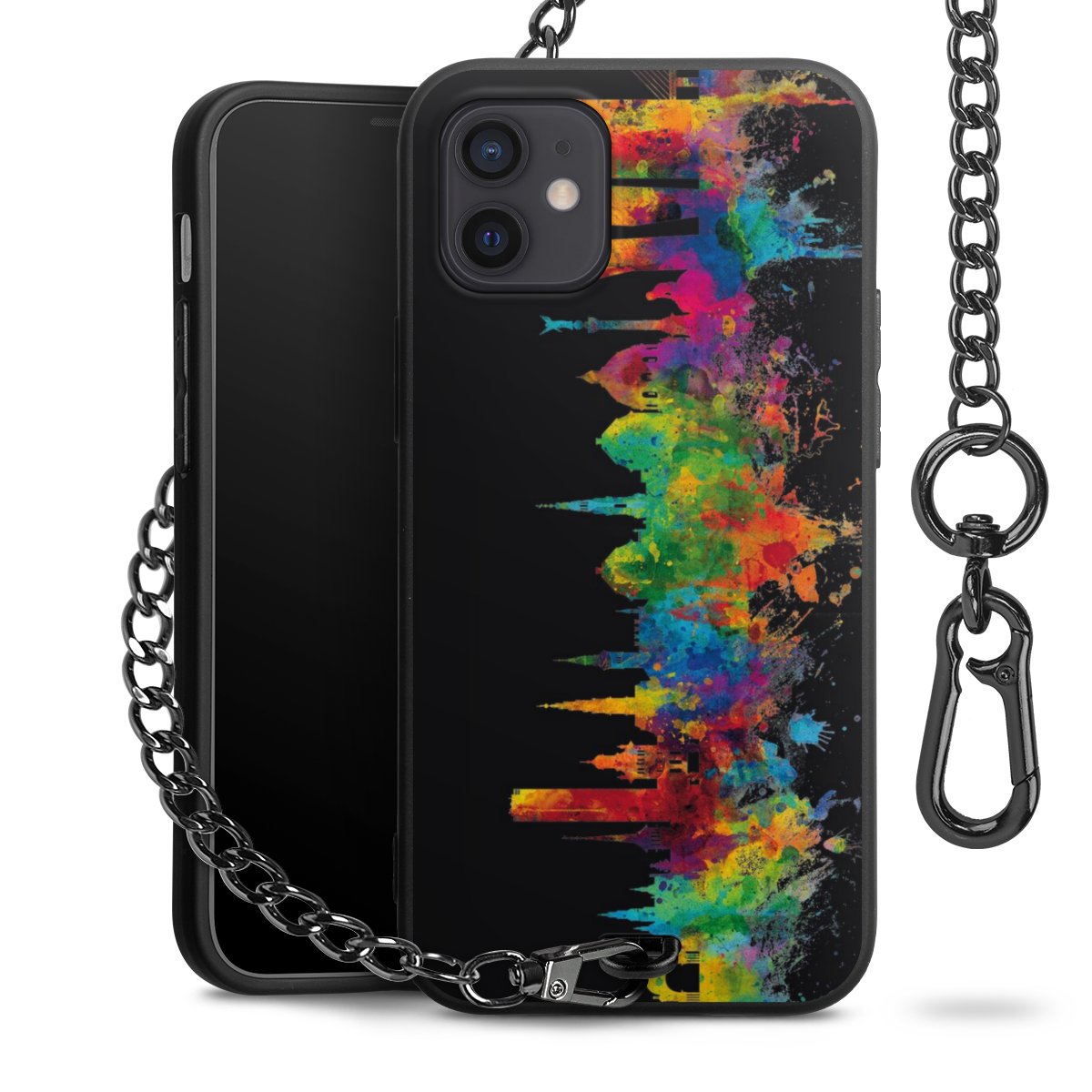 Die mattschwarze Silikon-Handyhülle besteht aus robustem TPU (thermoplastisches Polyurethan). Sie ist flexibel und schützt Dein Smartphone vor Stößen und Kratzern. Die Kette sowie der Karabinerhaken sind aus Metall in Gunmetal-Optik gefertigt. Für dieses Produkt kommen ausschließlich TÜV-geprüfte Materialien zum Einsatz.