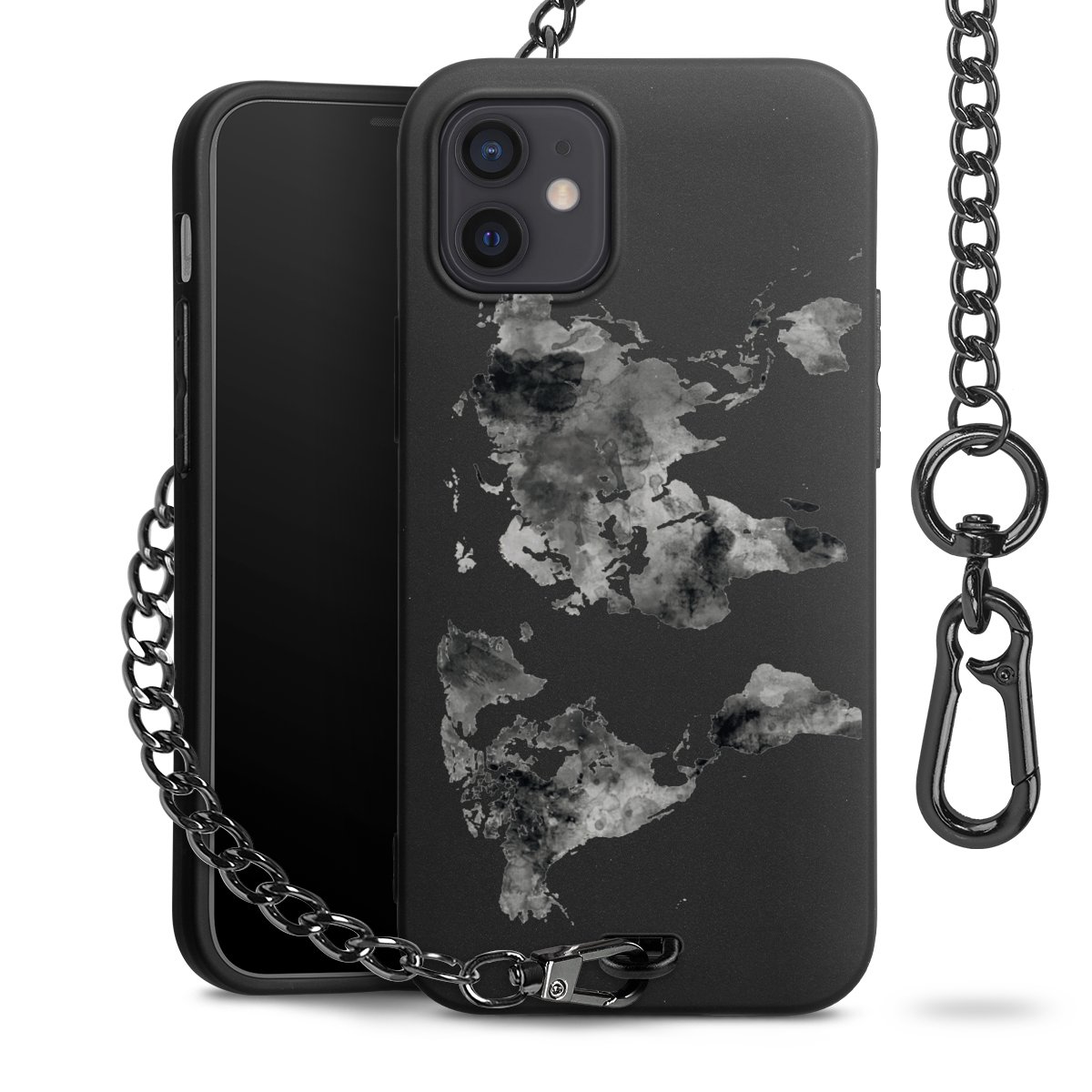 • Mattschwarze Handyhülle mit Metallkette