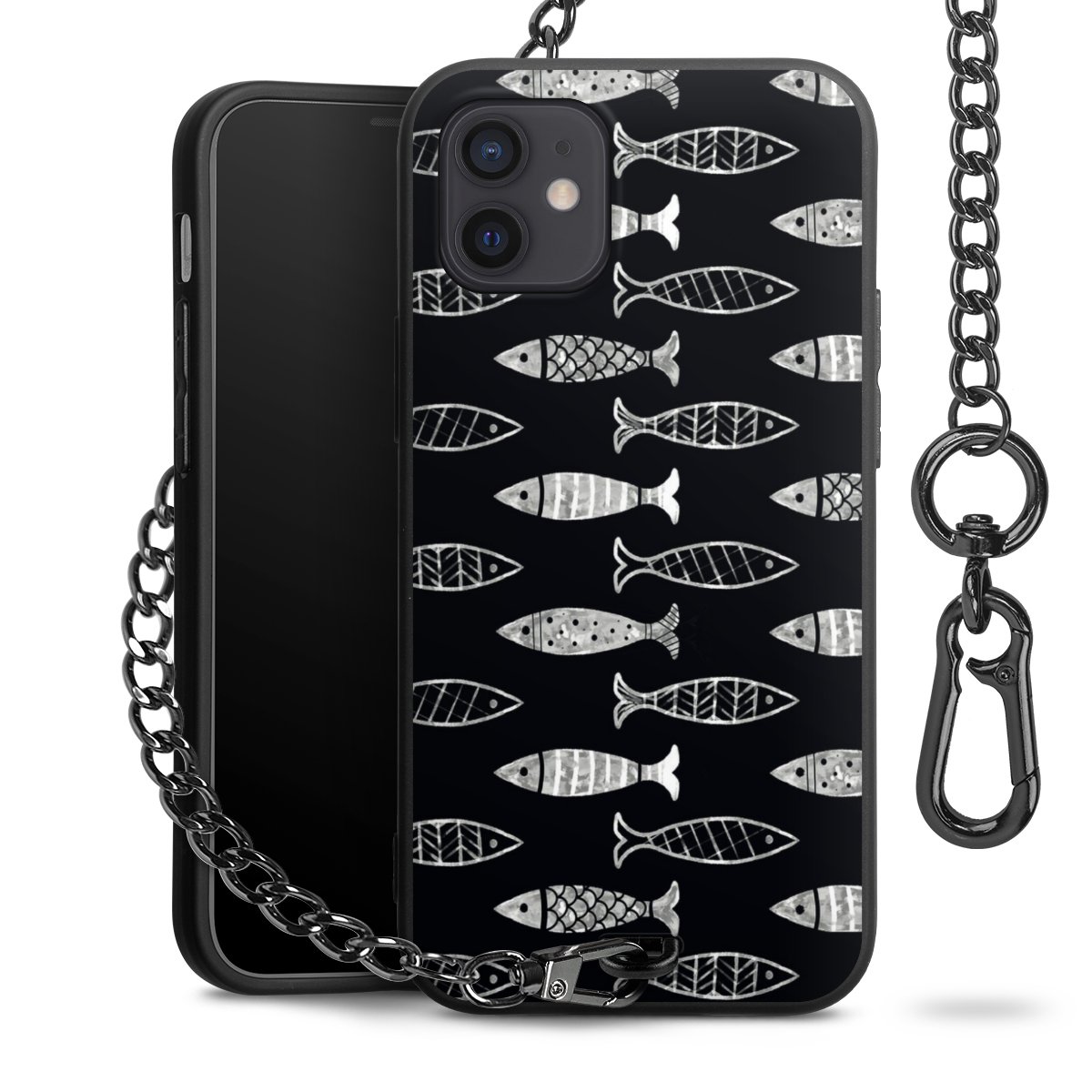 • Mattschwarze Handyhülle mit Metallkette
