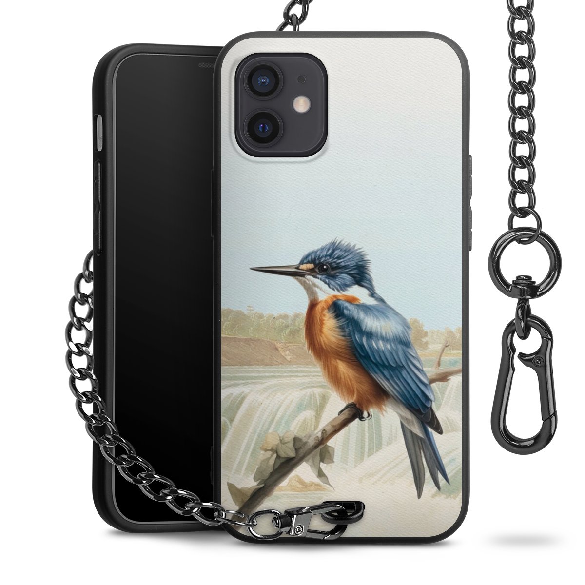 • Mattschwarze Handyhülle mit Metallkette