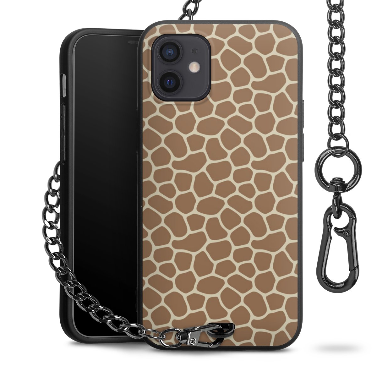 - Mattschwarze Handyhülle mit Metallkette