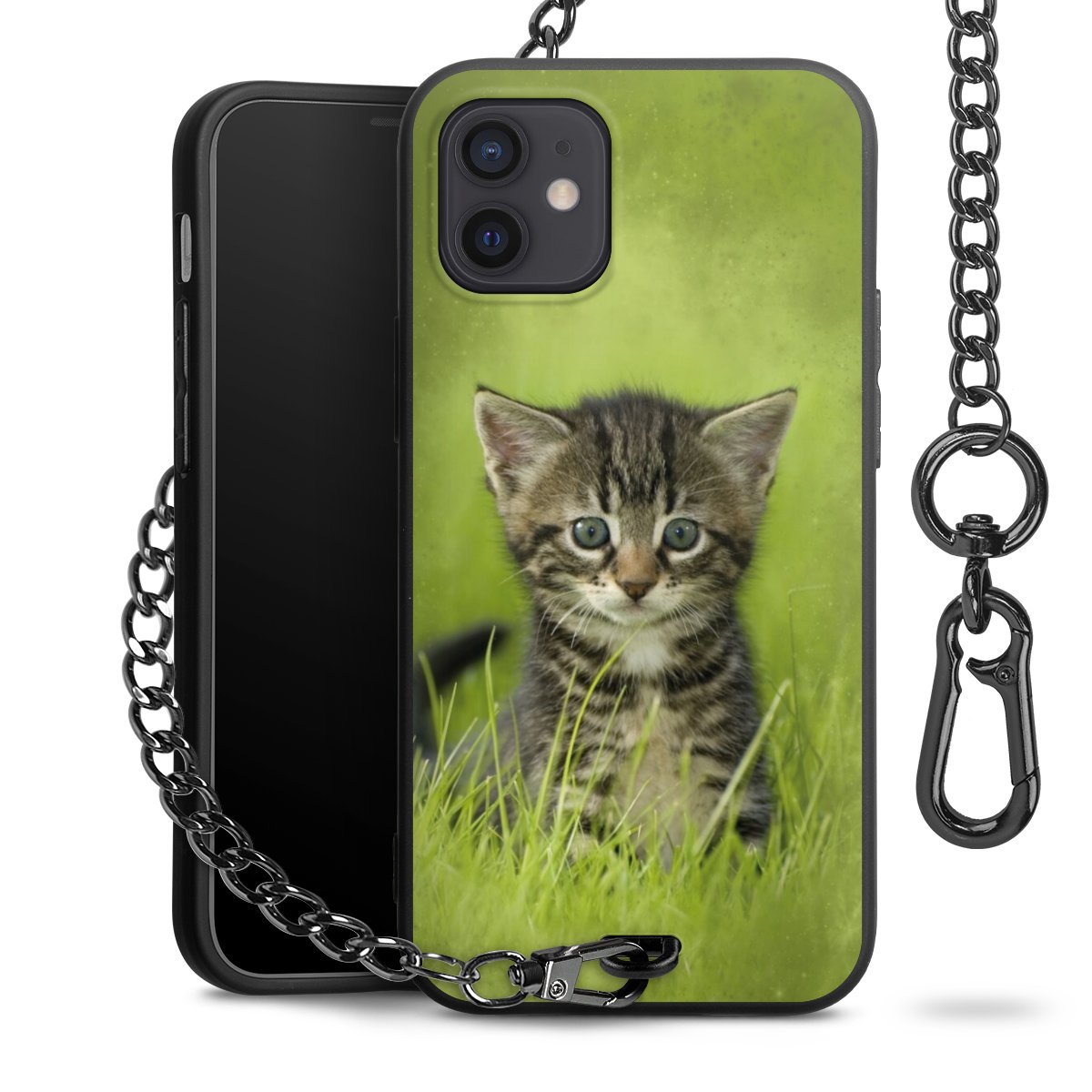 - Mattschwarze Handyhülle mit Metallkette