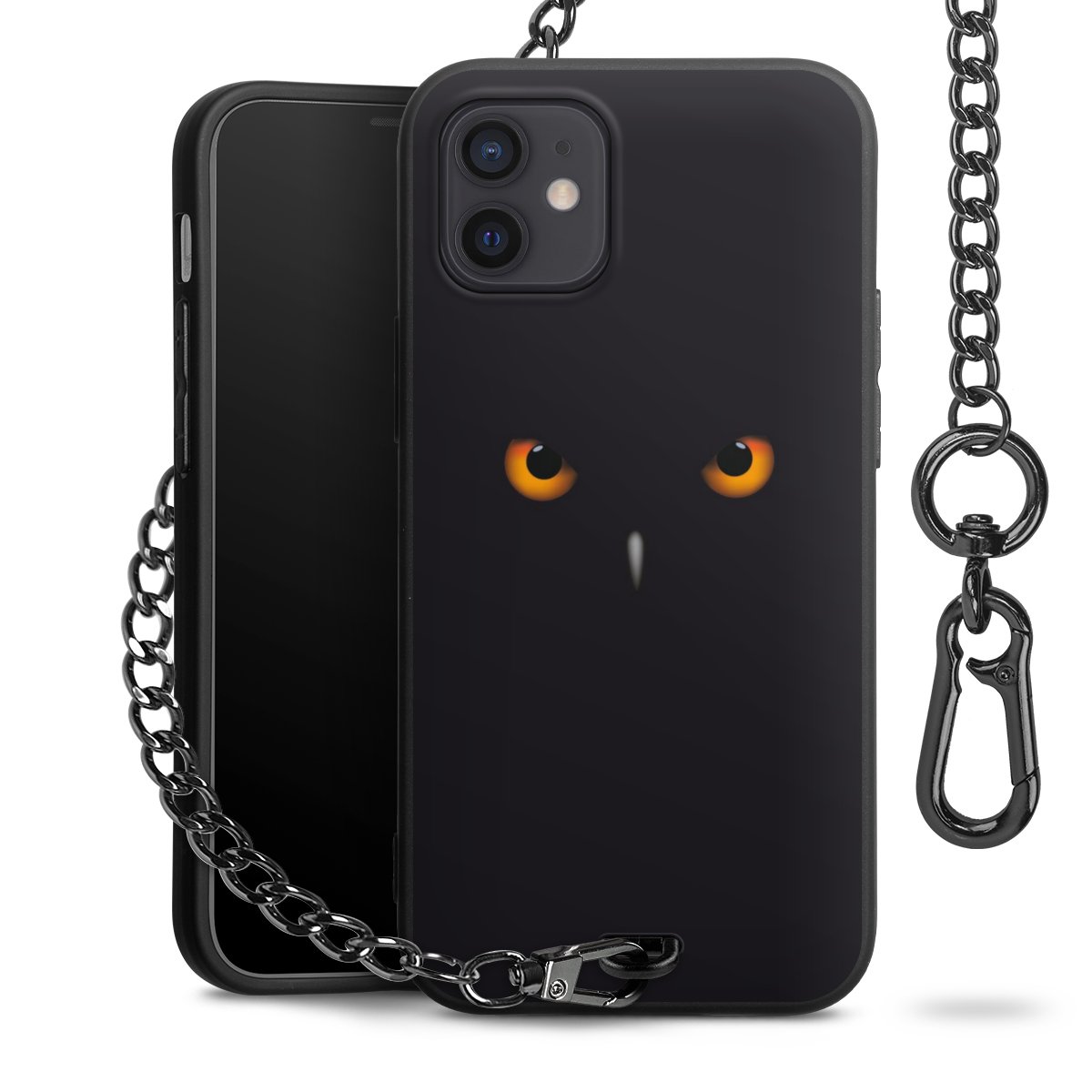 - Mattschwarze Handyhülle mit Metallkette