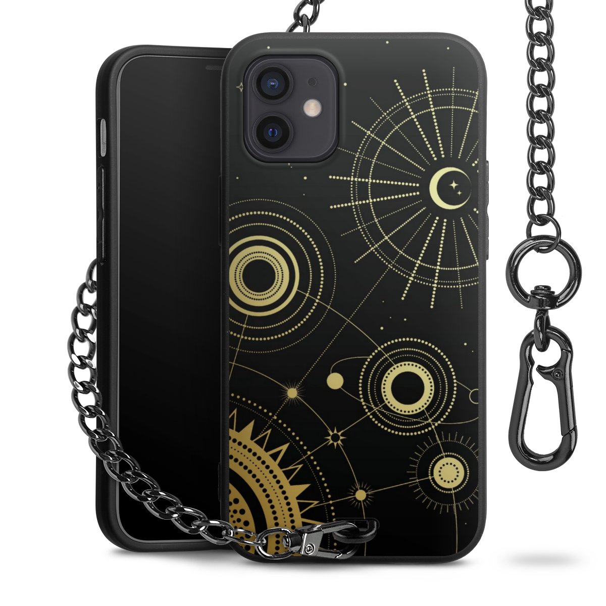 • Mattschwarze Handyhülle mit Metallkette