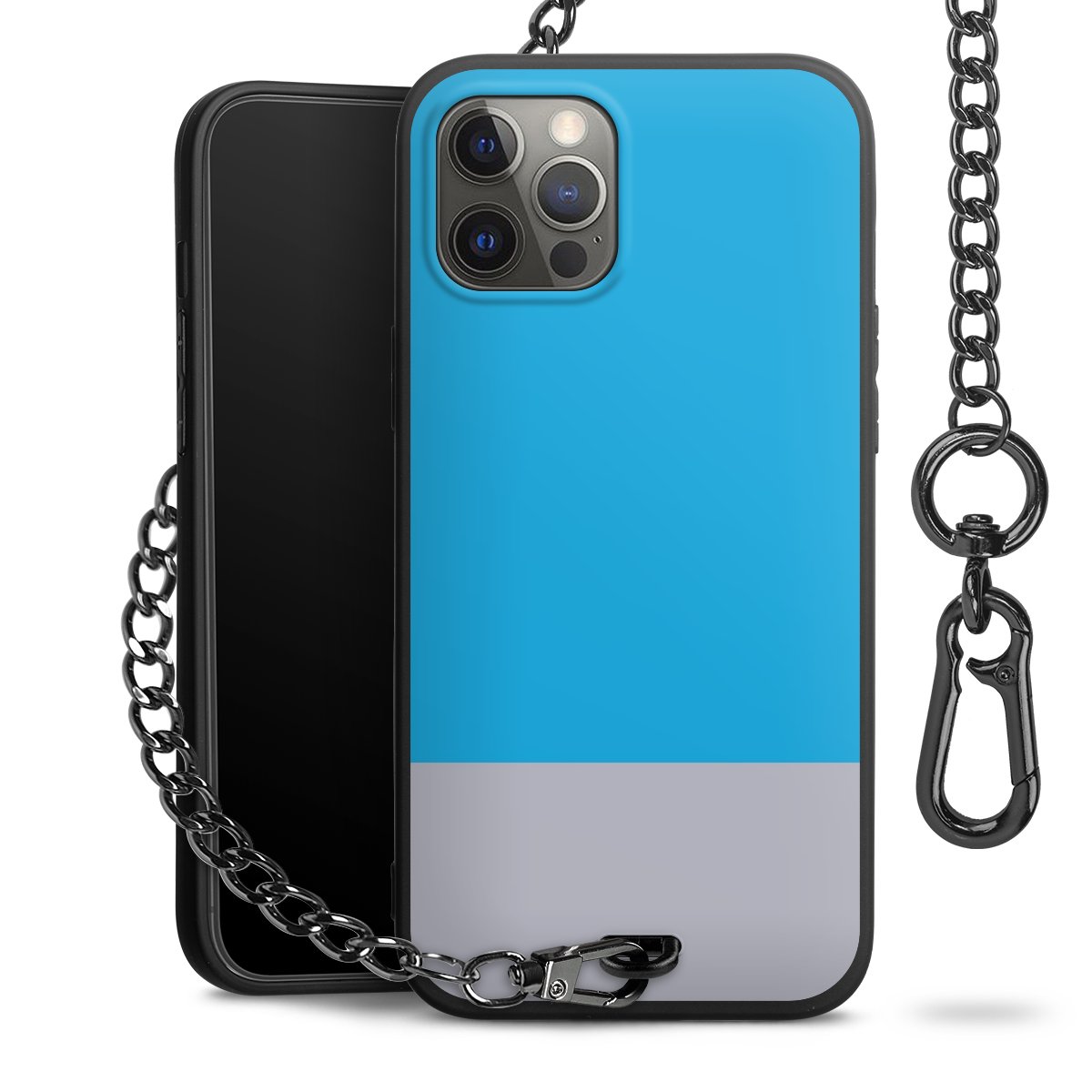 - Mattschwarze Handyhülle mit Metallkette