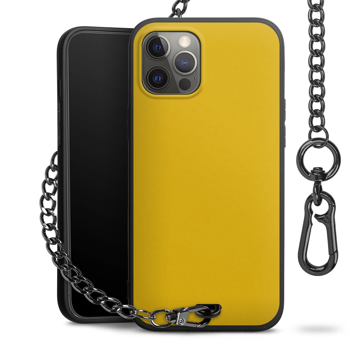 • Mattschwarze Handyhülle mit Metallkette