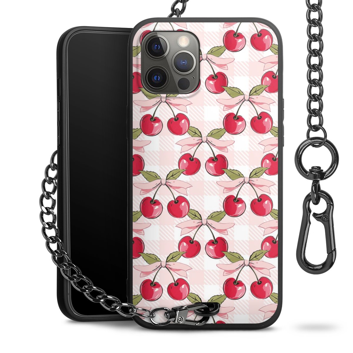 • Mattschwarze Handyhülle mit Metallkette