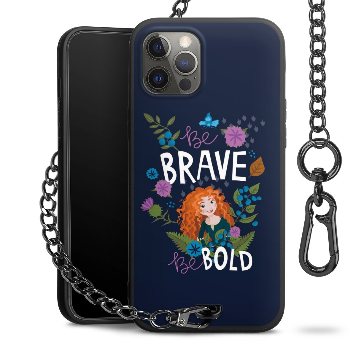 - Mattschwarze Handyhülle mit Metallkette