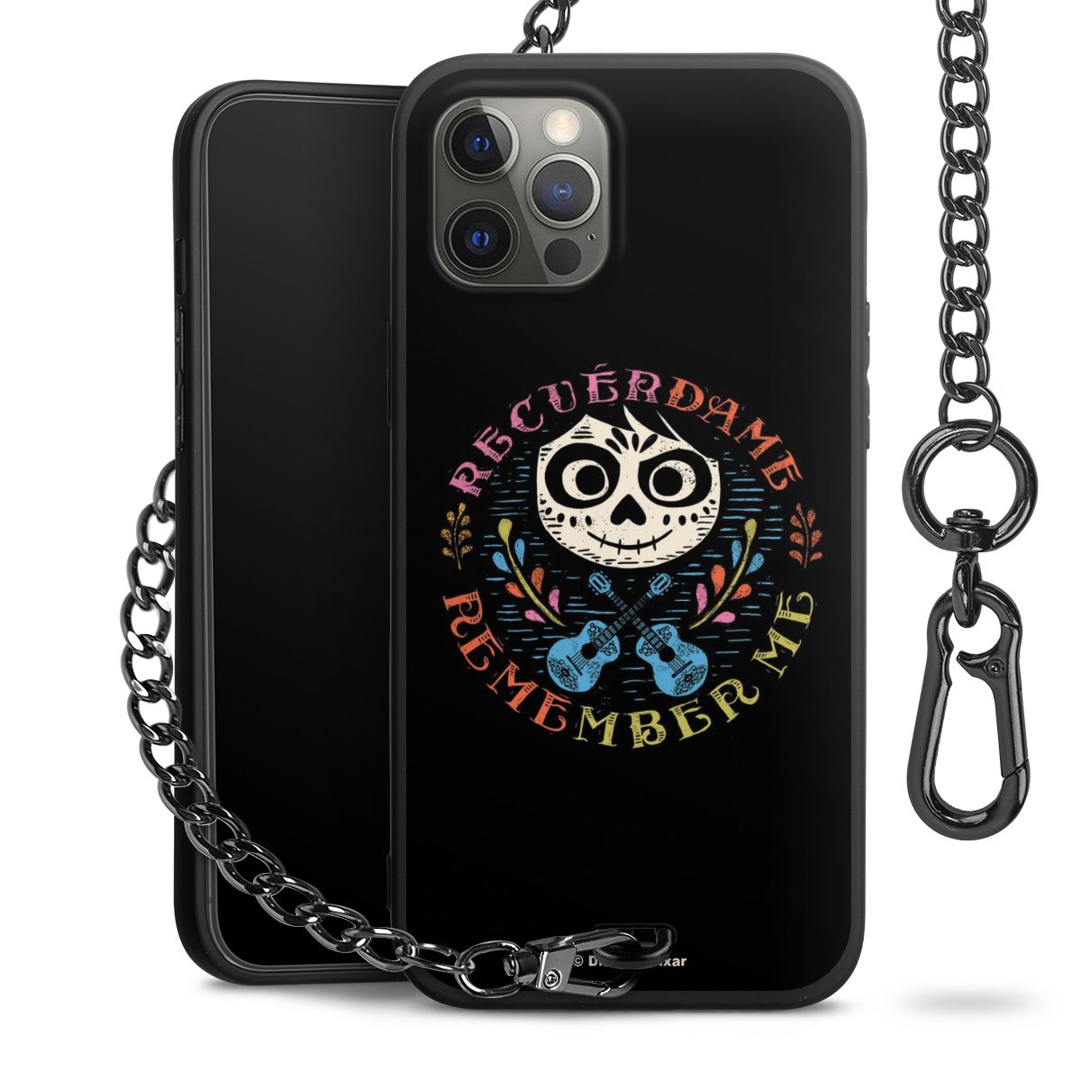- Mattschwarze Handyhülle mit Metallkette