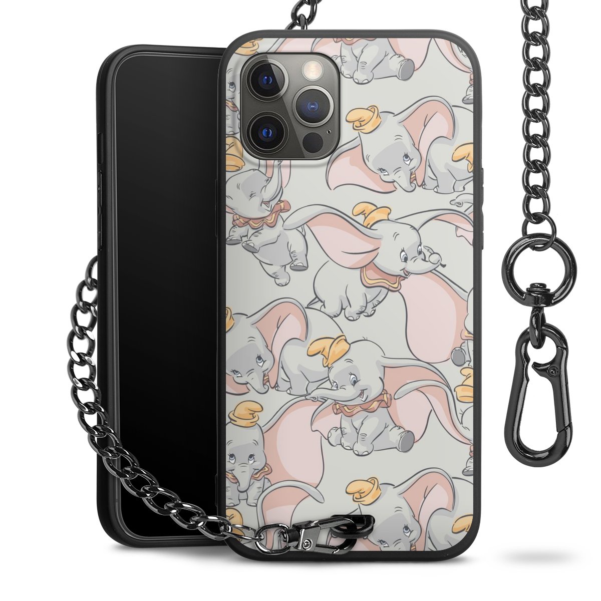 • Mattschwarze Handyhülle mit Metallkette