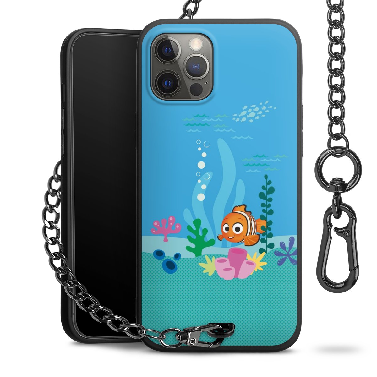 - Mattschwarze Handyhülle mit Metallkette