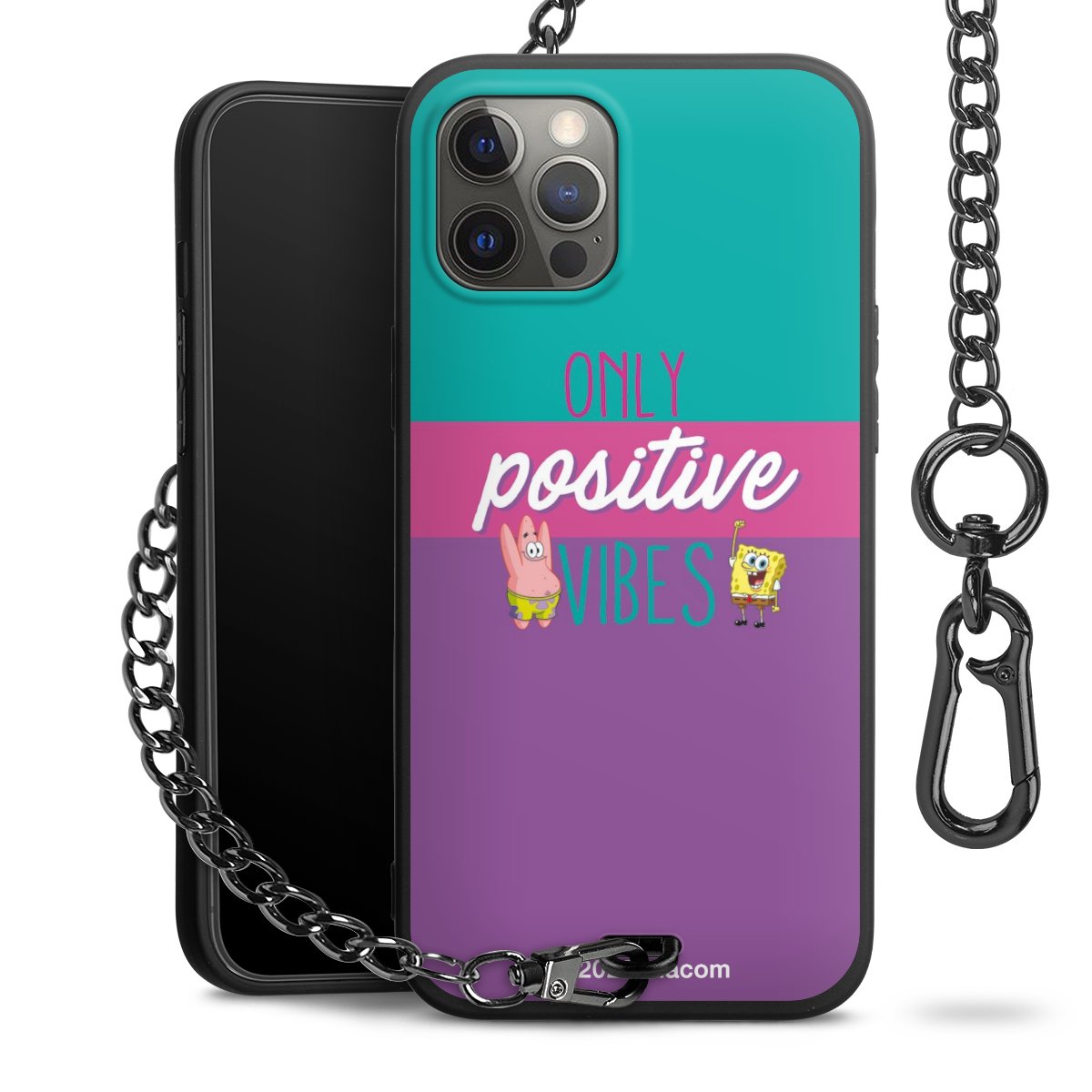 Die Handyhülle verfügt über eine mittig am unteren Rand platzierte Öse, an der die Metallkette stabil befestigt ist. Bestelle die Hülle einfach für Dein Smartphone-Modell, dann passt sie wie angegossen und Du brauchst sie bloß einmal anzudrücken. Handy in die Tasche, Karabiner an den Hosenbund – schon kann die Party starten.