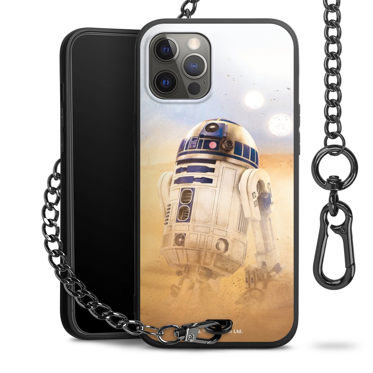 • Mattschwarze Handyhülle mit Metallkette