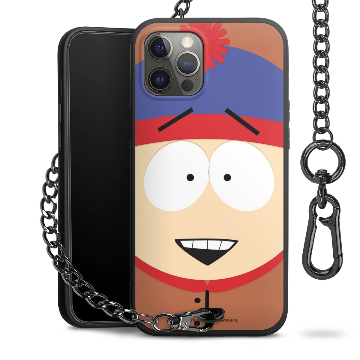 - Mattschwarze Handyhülle mit Metallkette