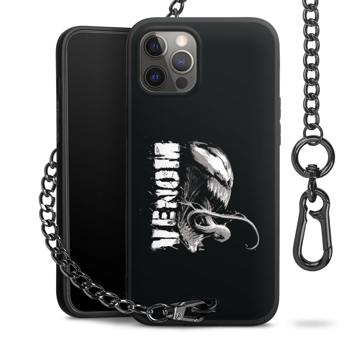 Die mattschwarze Silikon-Handyhülle besteht aus robustem TPU (thermoplastisches Polyurethan). Sie ist flexibel und schützt Dein Smartphone vor Stößen und Kratzern. Die Kette sowie der Karabinerhaken sind aus Metall in Gunmetal-Optik gefertigt. Für dieses Produkt kommen ausschließlich TÜV-geprüfte Materialien zum Einsatz.
