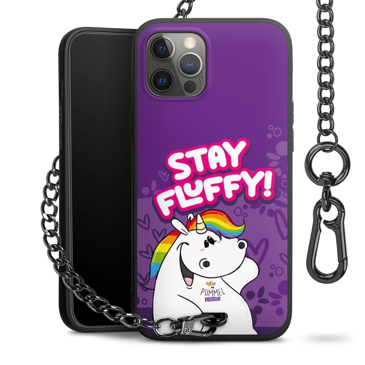 Die mattschwarze Silikon-Handyhülle besteht aus robustem TPU (thermoplastisches Polyurethan). Sie ist flexibel und schützt Dein Smartphone vor Stößen und Kratzern. Die Kette sowie der Karabinerhaken sind aus Metall in Gunmetal-Optik gefertigt. Für dieses Produkt kommen ausschließlich TÜV-geprüfte Materialien zum Einsatz.