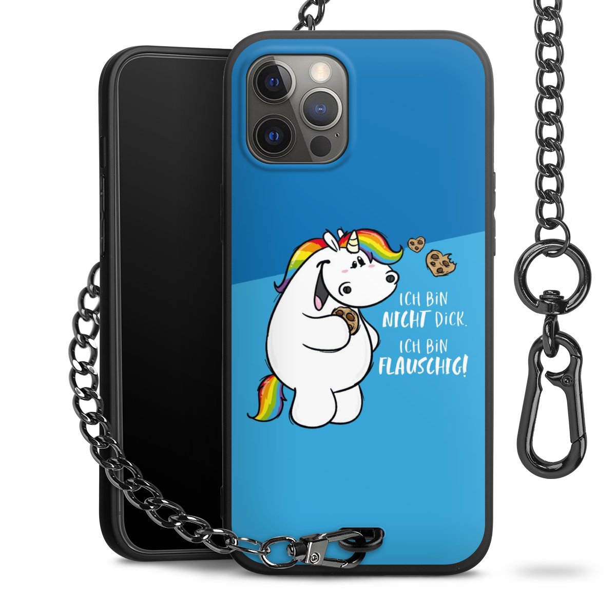 Die mattschwarze Silikon-Handyhülle besteht aus robustem TPU (thermoplastisches Polyurethan). Sie ist flexibel und schützt Dein Smartphone vor Stößen und Kratzern. Die Kette sowie der Karabinerhaken sind aus Metall in Gunmetal-Optik gefertigt. Für dieses Produkt kommen ausschließlich TÜV-geprüfte Materialien zum Einsatz.
