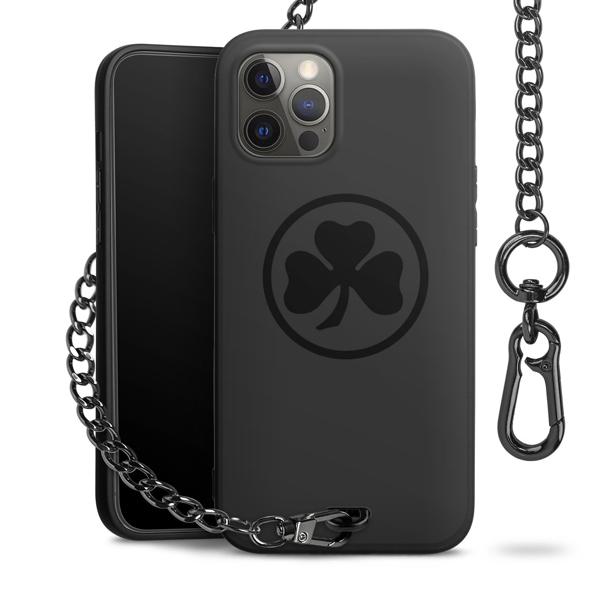 • Mattschwarze Handyhülle mit Metallkette