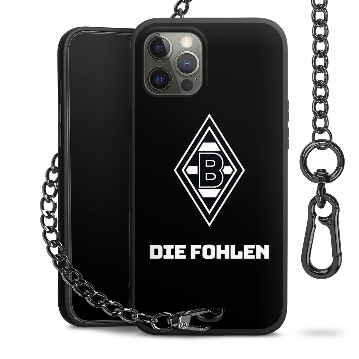 Die mattschwarze Silikon-Handyhülle besteht aus robustem TPU (thermoplastisches Polyurethan). Sie ist flexibel und schützt Dein Smartphone vor Stößen und Kratzern. Die Kette sowie der Karabinerhaken sind aus Metall in Gunmetal-Optik gefertigt. Für dieses Produkt kommen ausschließlich TÜV-geprüfte Materialien zum Einsatz.