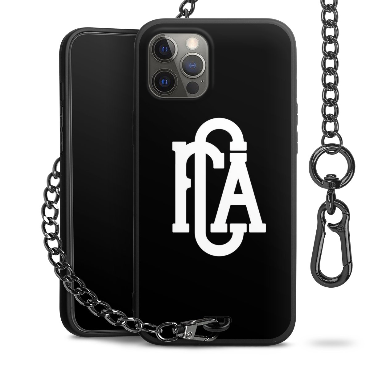 • Mattschwarze Handyhülle mit Metallkette