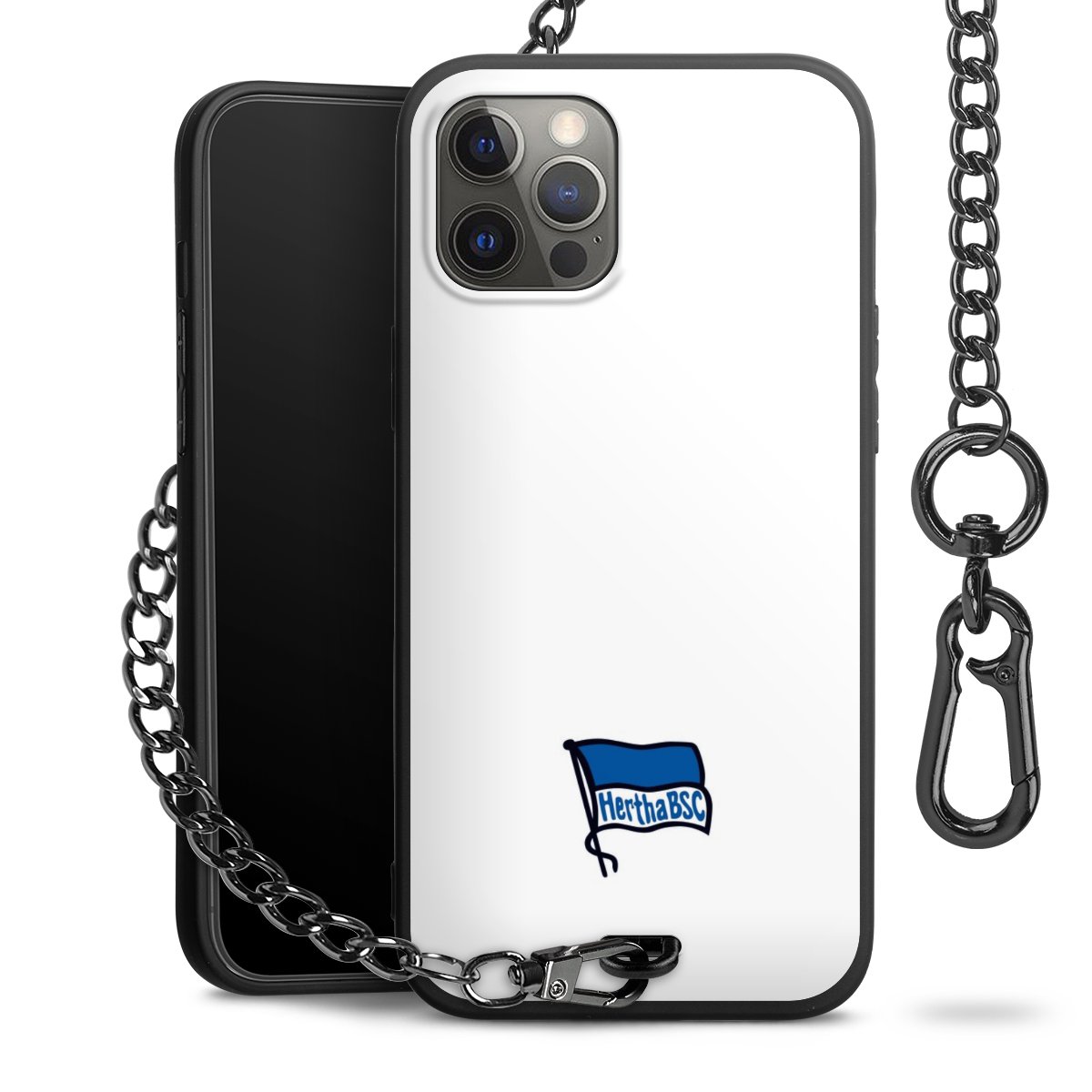 Die mattschwarze Silikon-Handyhülle besteht aus robustem TPU (thermoplastisches Polyurethan). Sie ist flexibel und schützt Dein Smartphone vor Stößen und Kratzern. Die Kette sowie der Karabinerhaken sind aus Metall in Gunmetal-Optik gefertigt. Für dieses Produkt kommen ausschließlich TÜV-geprüfte Materialien zum Einsatz.