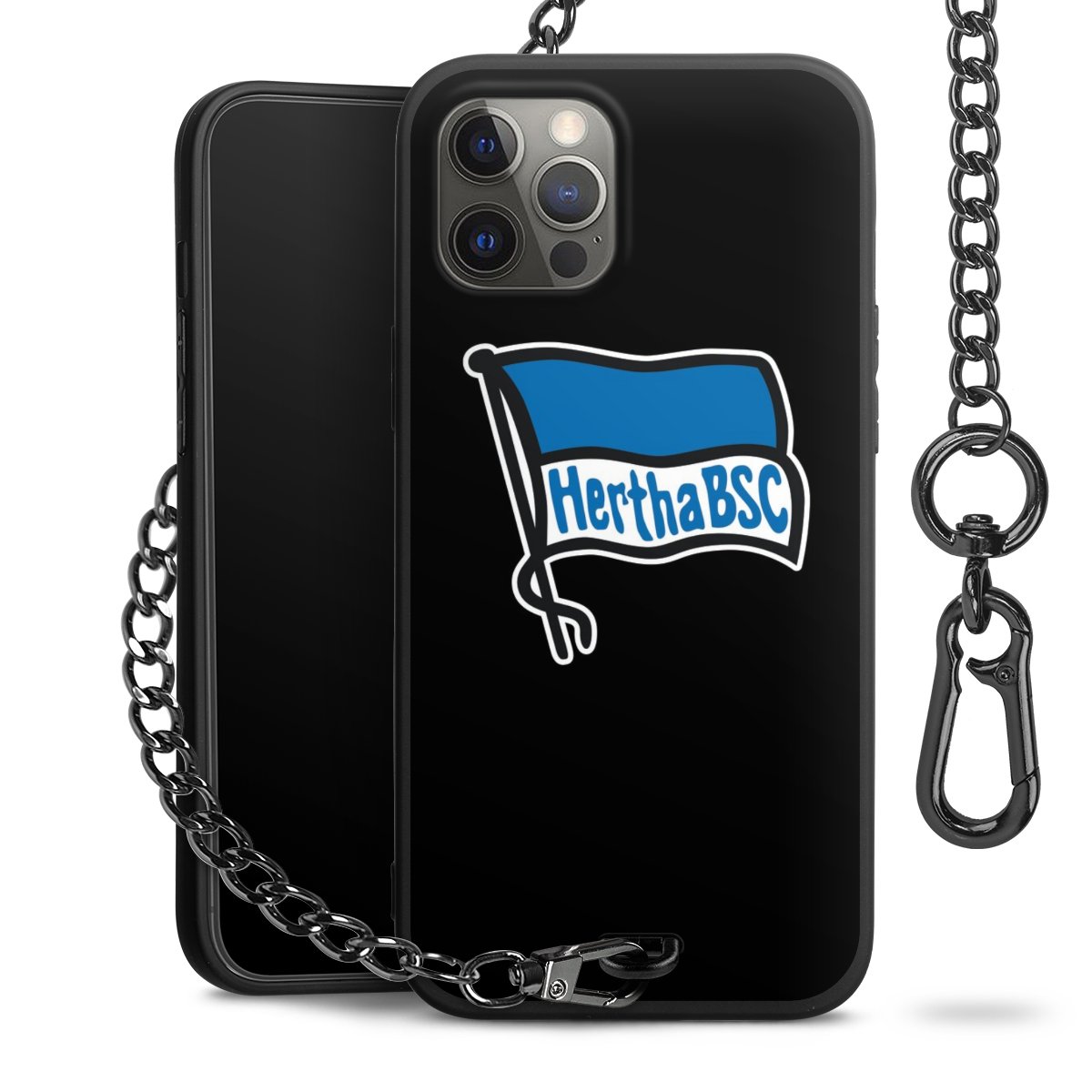 Die mattschwarze Silikon-Handyhülle besteht aus robustem TPU (thermoplastisches Polyurethan). Sie ist flexibel und schützt Dein Smartphone vor Stößen und Kratzern. Die Kette sowie der Karabinerhaken sind aus Metall in Gunmetal-Optik gefertigt. Für dieses Produkt kommen ausschließlich TÜV-geprüfte Materialien zum Einsatz.