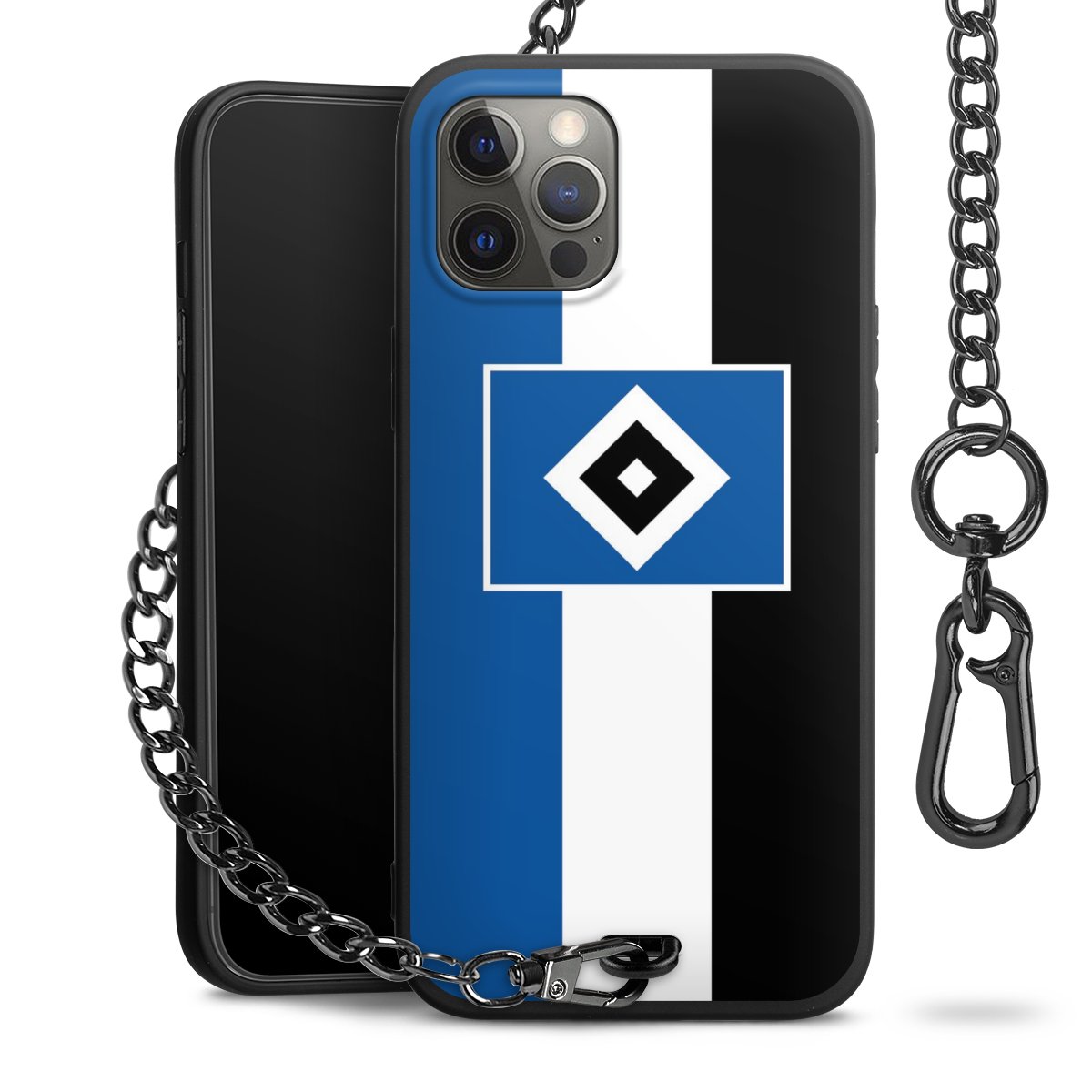 • Mattschwarze Handyhülle mit Metallkette