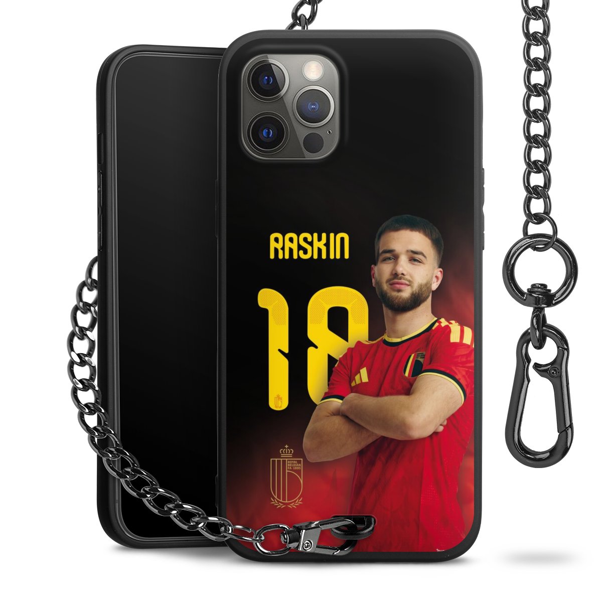 Die mattschwarze Silikon-Handyhülle besteht aus robustem TPU (thermoplastisches Polyurethan). Sie ist flexibel und schützt Dein Smartphone vor Stößen und Kratzern. Die Kette sowie der Karabinerhaken sind aus Metall in Gunmetal-Optik gefertigt. Für dieses Produkt kommen ausschließlich TÜV-geprüfte Materialien zum Einsatz.