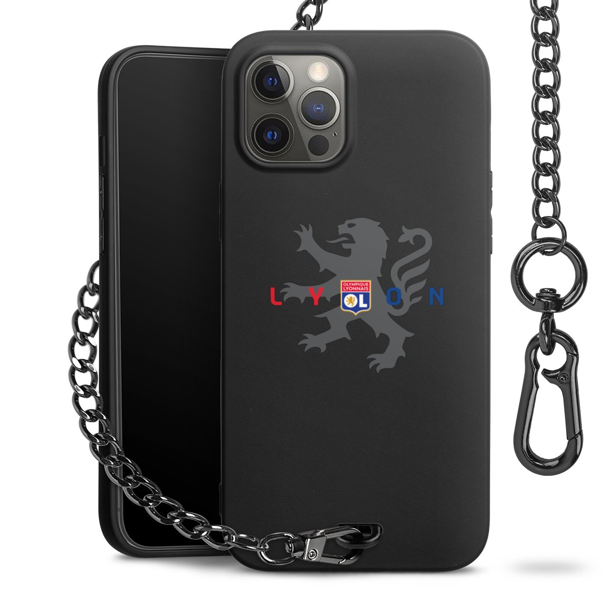 • Mattschwarze Handyhülle mit Metallkette