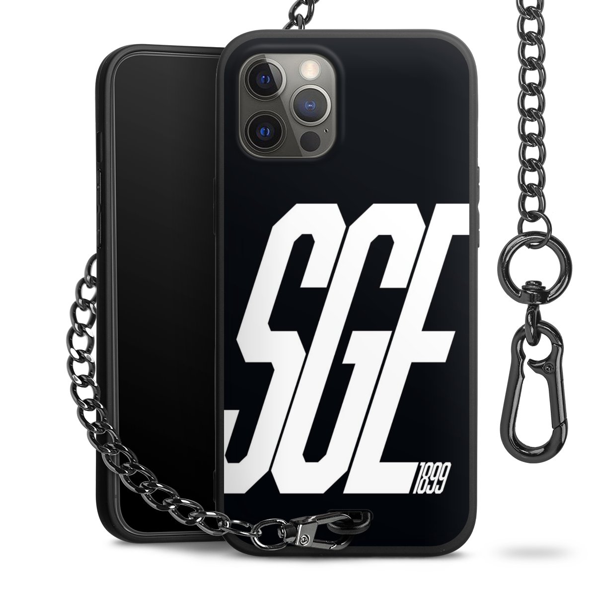 • Mattschwarze Handyhülle mit Metallkette