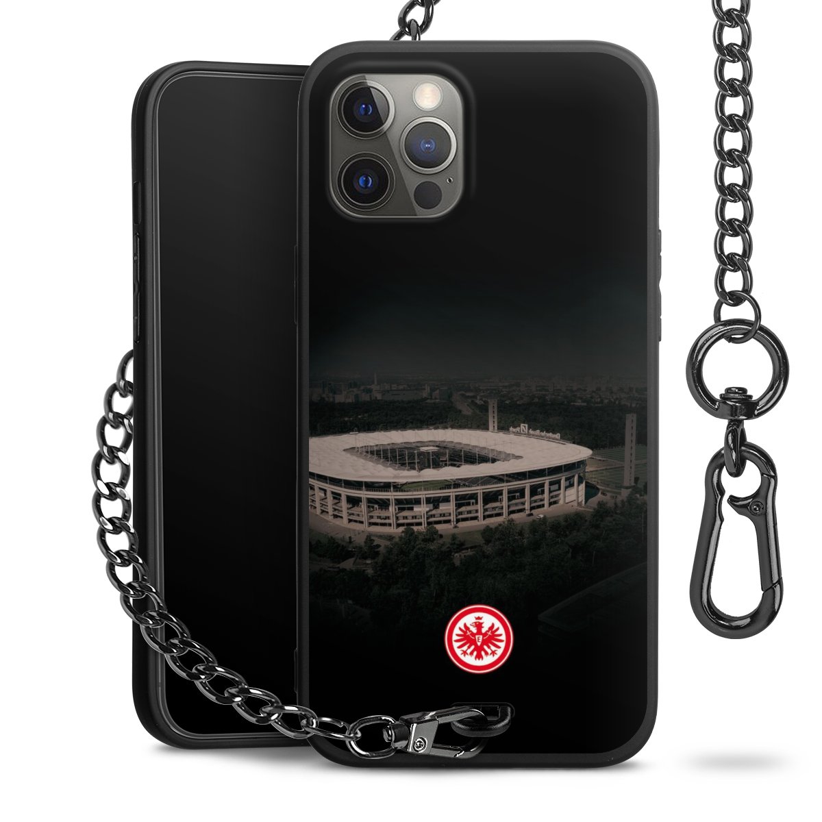• Mattschwarze Handyhülle mit Metallkette