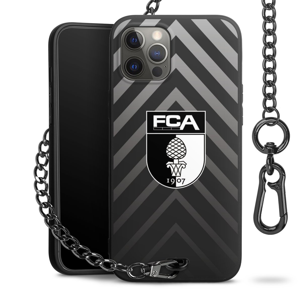 • Mattschwarze Handyhülle mit Metallkette