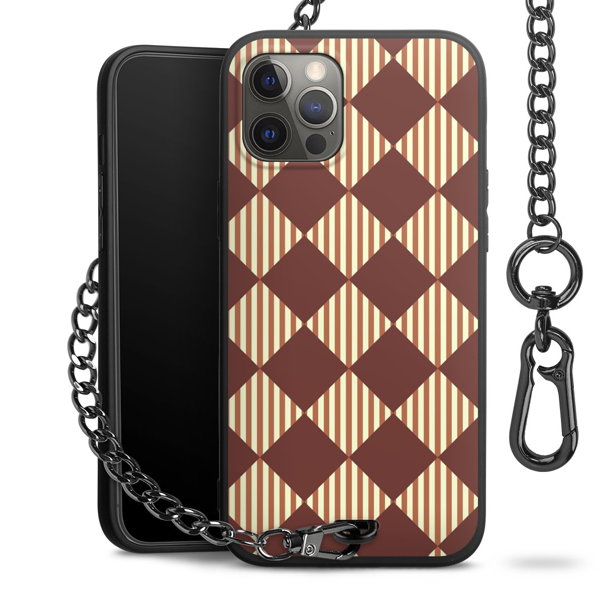 - Mattschwarze Handyhülle mit Metallkette
