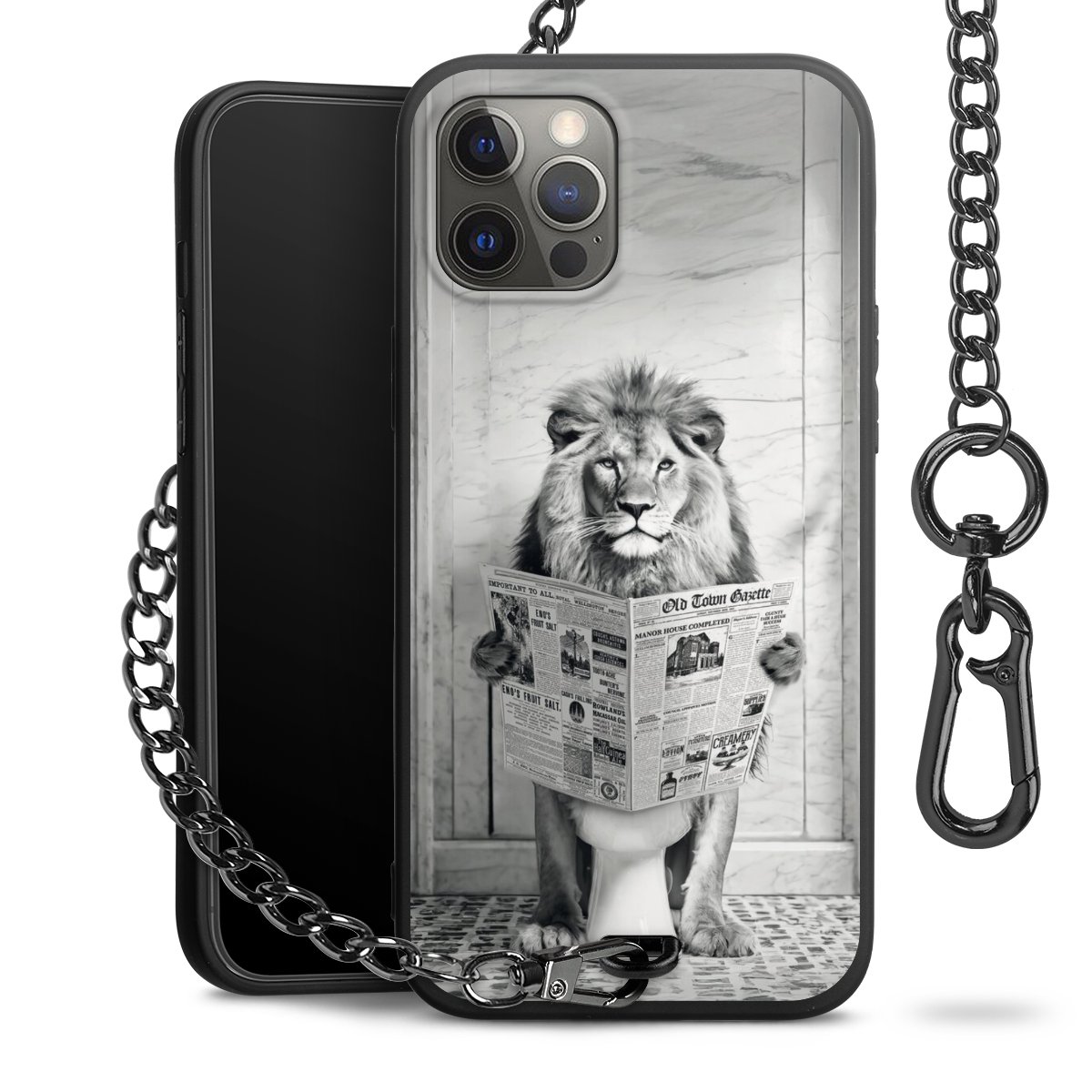Die mattschwarze Silikon-Handyhülle besteht aus robustem TPU (thermoplastisches Polyurethan). Sie ist flexibel und schützt Dein Smartphone vor Stößen und Kratzern. Die Kette sowie der Karabinerhaken sind aus Metall in Gunmetal-Optik gefertigt. Für dieses Produkt kommen ausschließlich TÜV-geprüfte Materialien zum Einsatz.