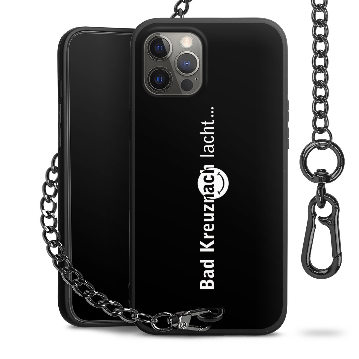 Die mattschwarze Silikon-Handyhülle besteht aus robustem TPU (thermoplastisches Polyurethan). Sie ist flexibel und schützt Dein Smartphone vor Stößen und Kratzern. Die Kette sowie der Karabinerhaken sind aus Metall in Gunmetal-Optik gefertigt. Für dieses Produkt kommen ausschließlich TÜV-geprüfte Materialien zum Einsatz.