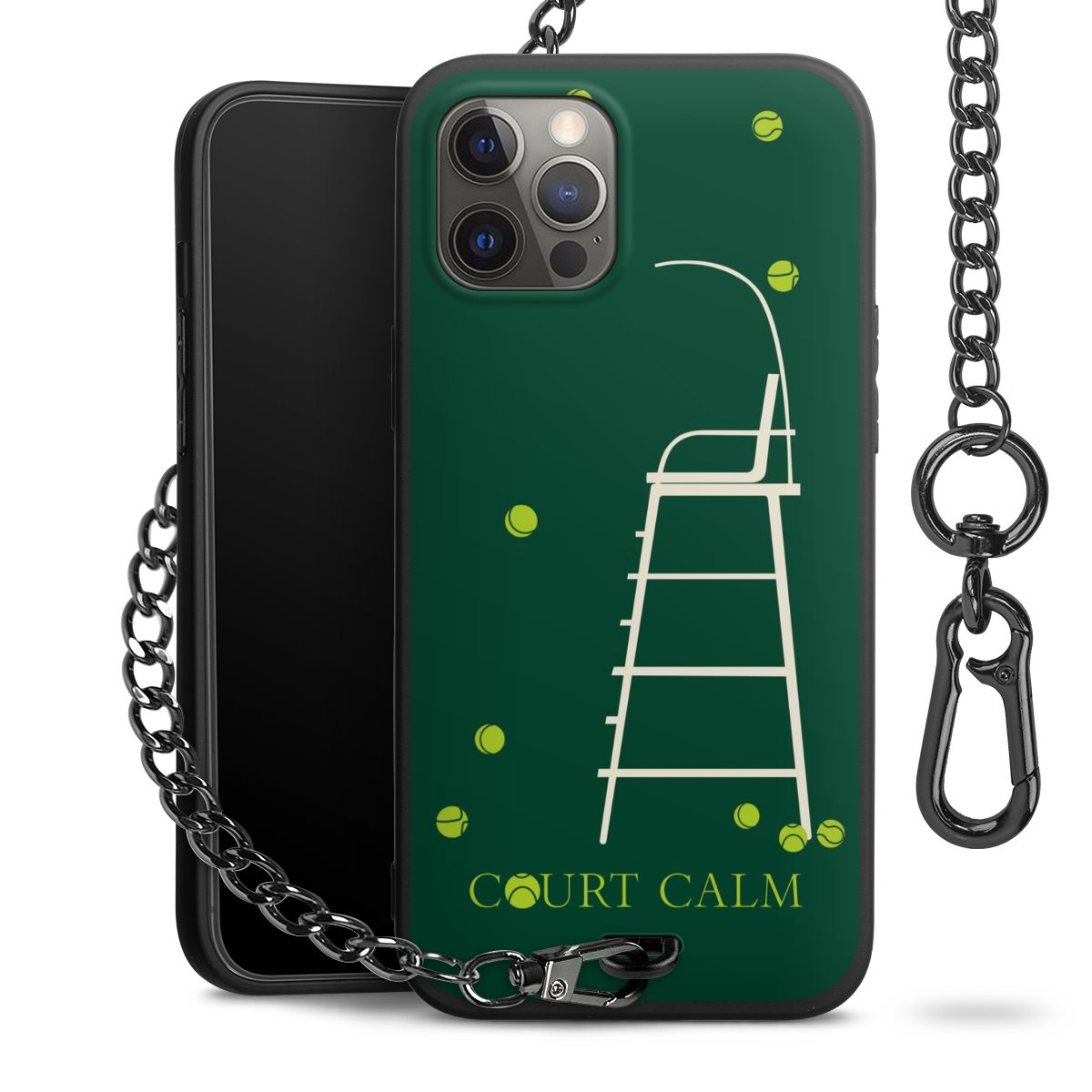 - Mattschwarze Handyhülle mit Metallkette