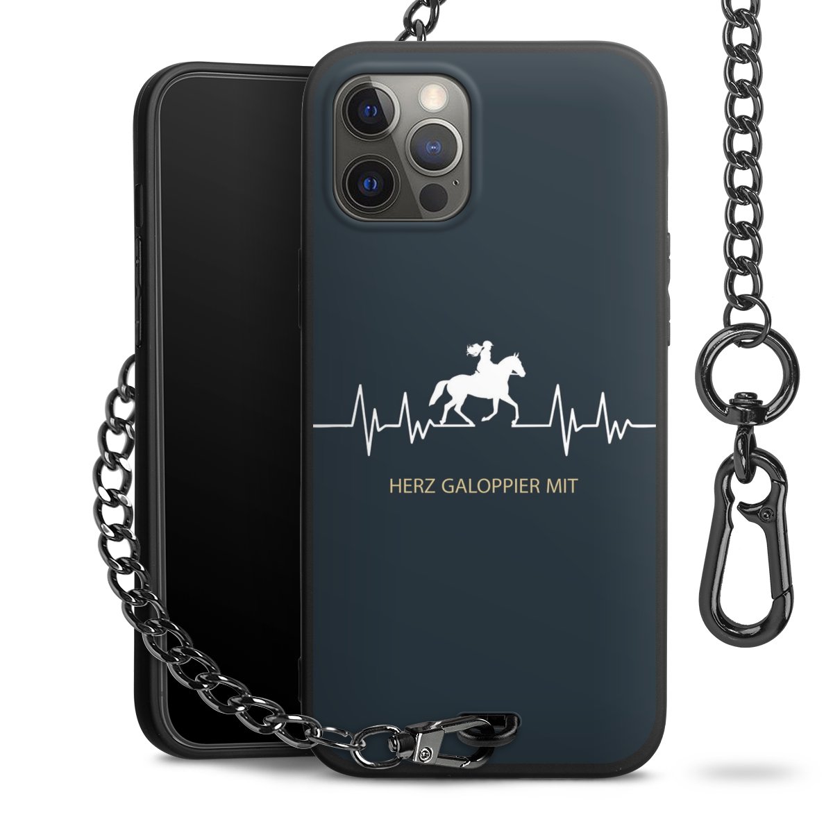 - Mattschwarze Handyhülle mit Metallkette