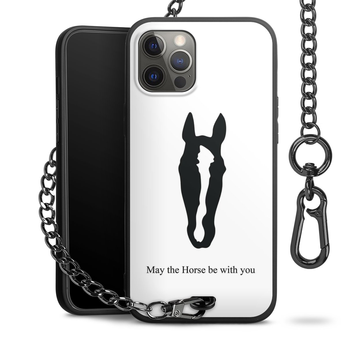 - Mattschwarze Handyhülle mit Metallkette