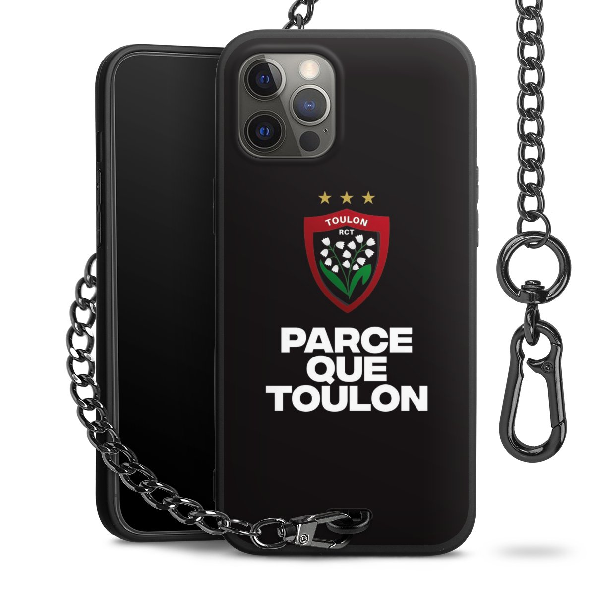 - Mattschwarze Handyhülle mit Metallkette