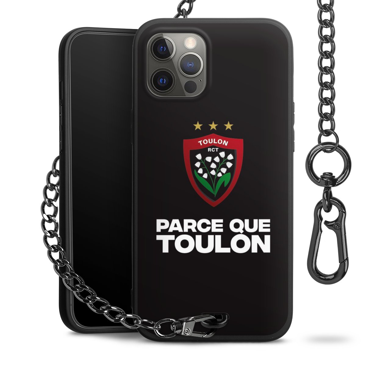 • Mattschwarze Handyhülle mit Metallkette