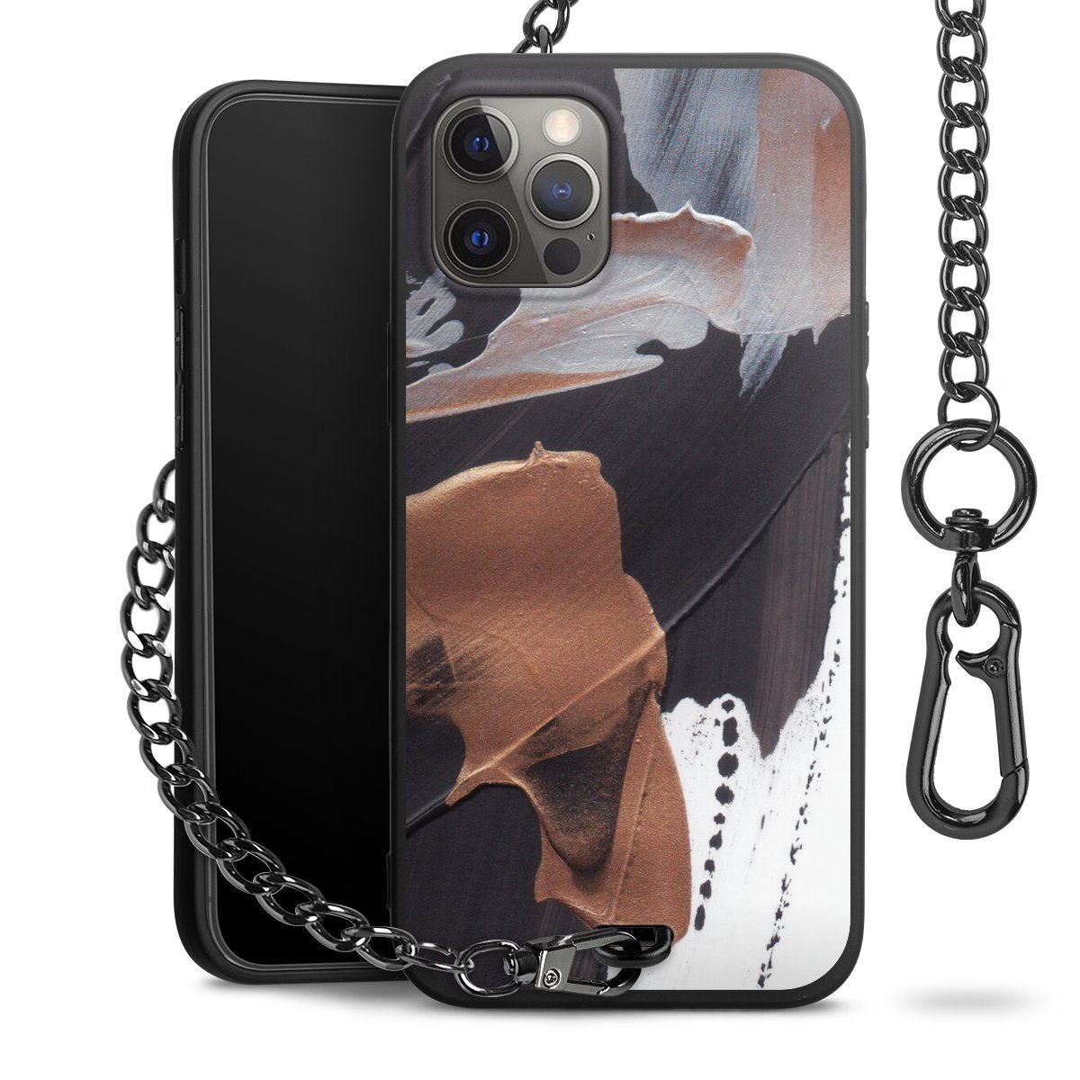 • Mattschwarze Handyhülle mit Metallkette