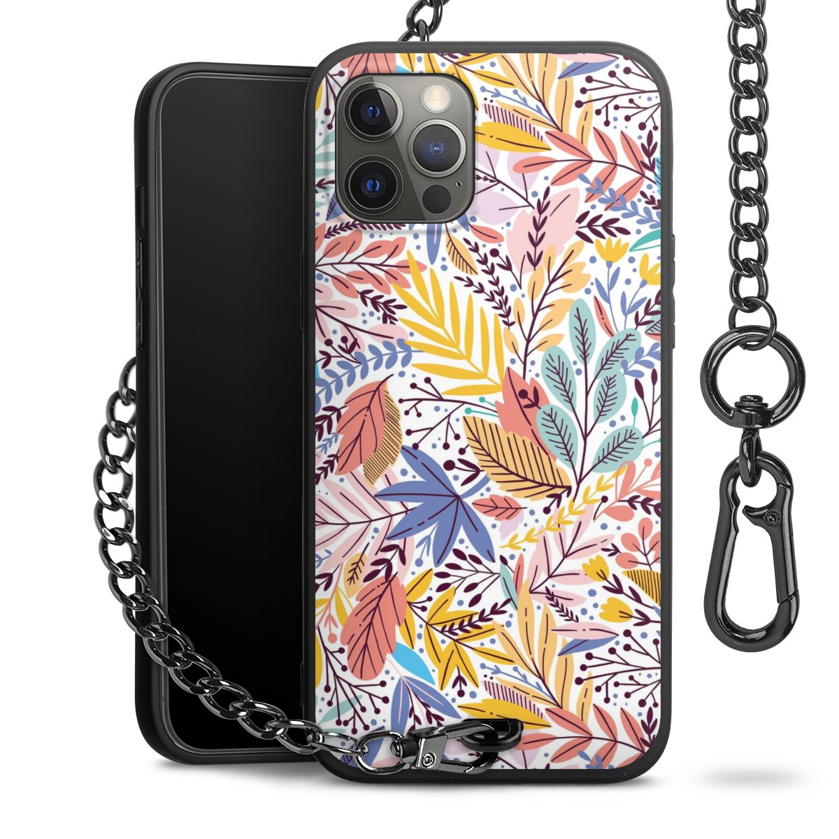 • Mattschwarze Handyhülle mit Metallkette