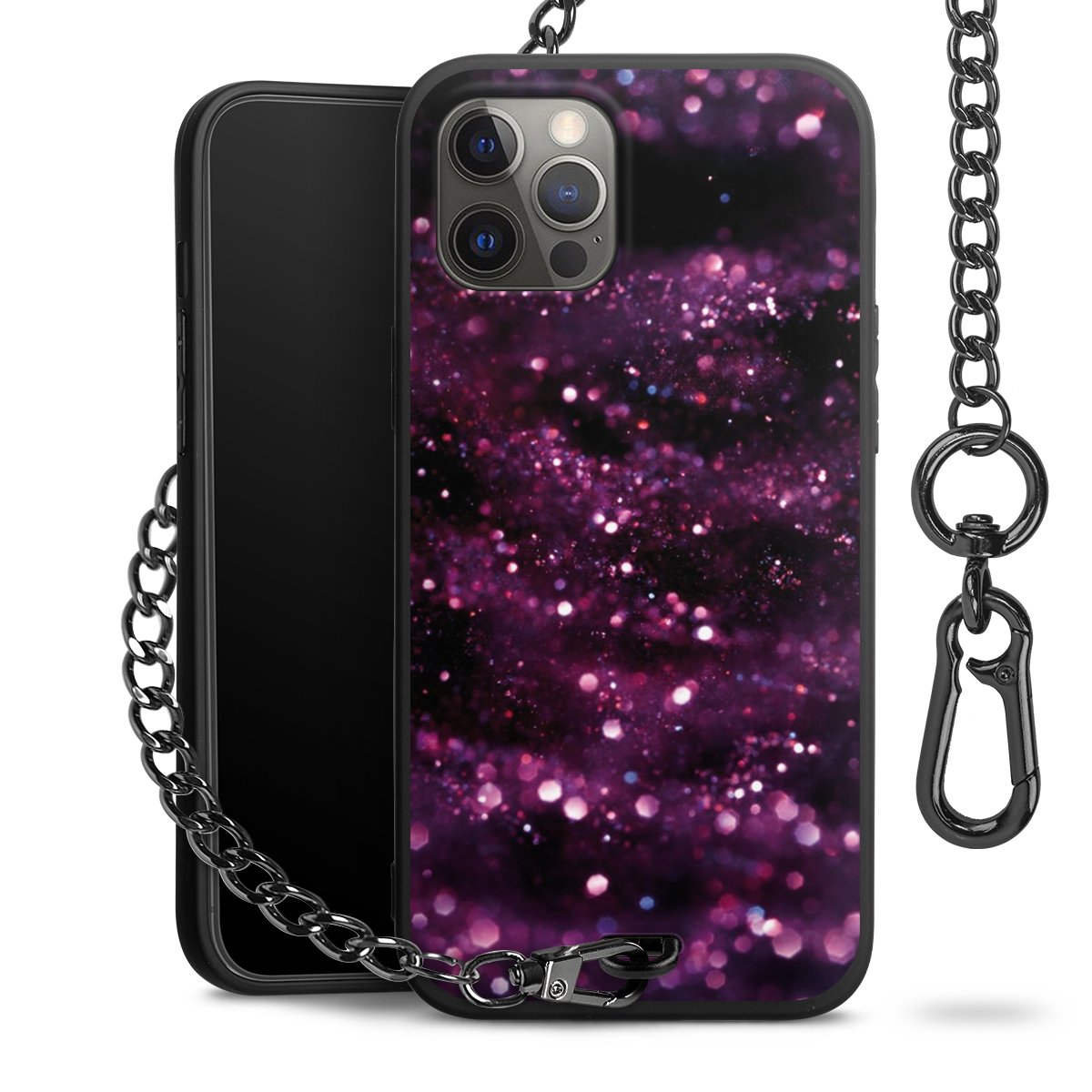 - Mattschwarze Handyhülle mit Metallkette