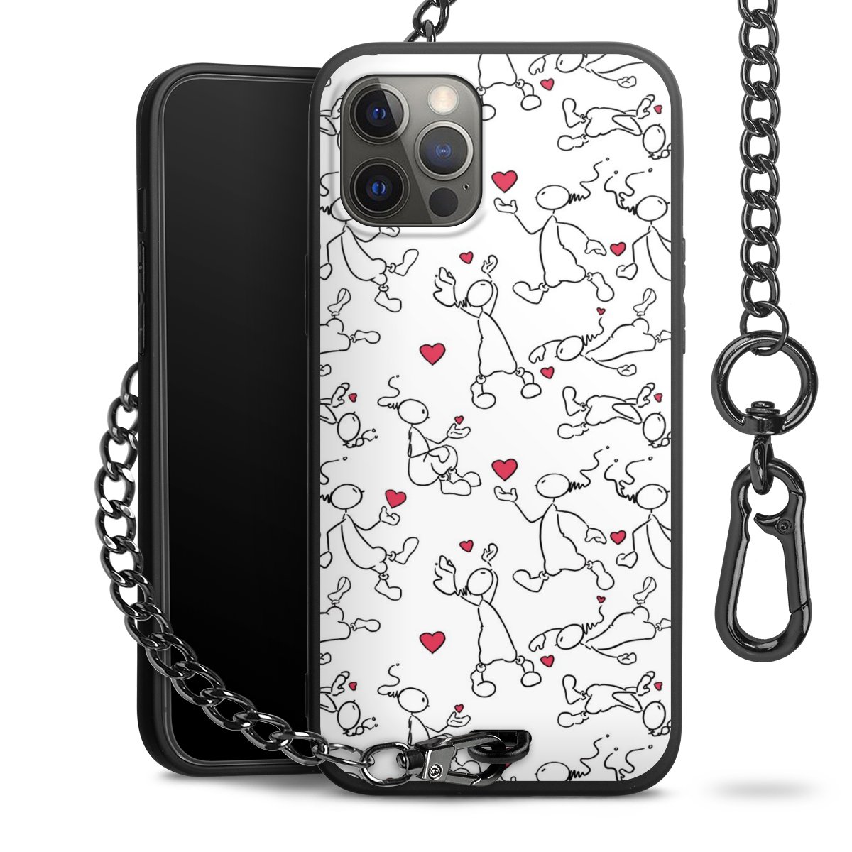 • Mattschwarze Handyhülle mit Metallkette
