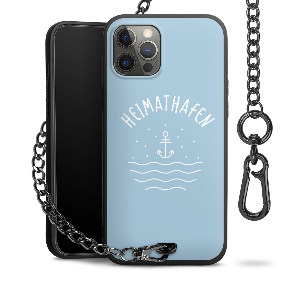 Die mattschwarze Silikon-Handyhülle besteht aus robustem TPU (thermoplastisches Polyurethan). Sie ist flexibel und schützt Dein Smartphone vor Stößen und Kratzern. Die Kette sowie der Karabinerhaken sind aus Metall in Gunmetal-Optik gefertigt. Für dieses Produkt kommen ausschließlich TÜV-geprüfte Materialien zum Einsatz.