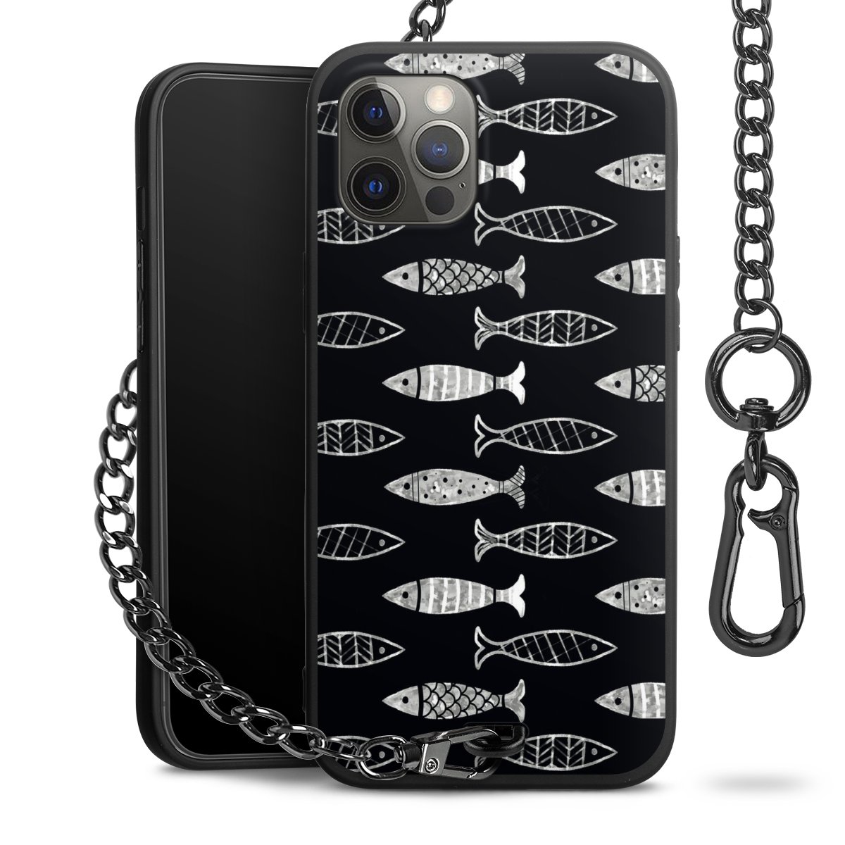 • Mattschwarze Handyhülle mit Metallkette