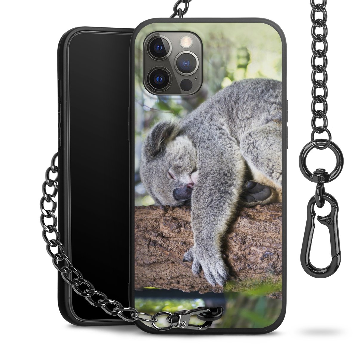 • Mattschwarze Handyhülle mit Metallkette