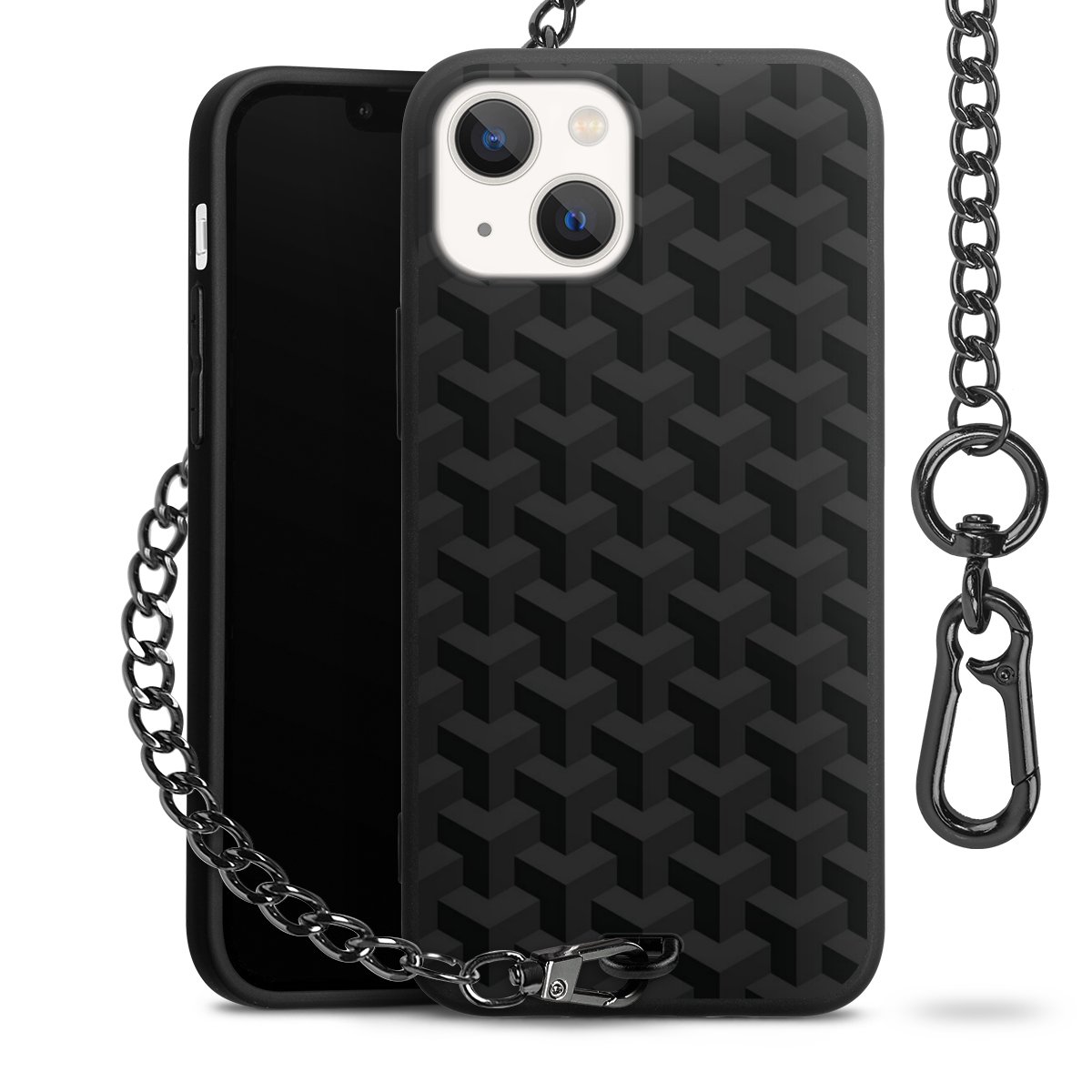 • Mattschwarze Handyhülle mit Metallkette