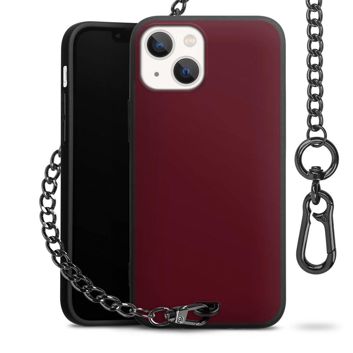 - Mattschwarze Handyhülle mit Metallkette