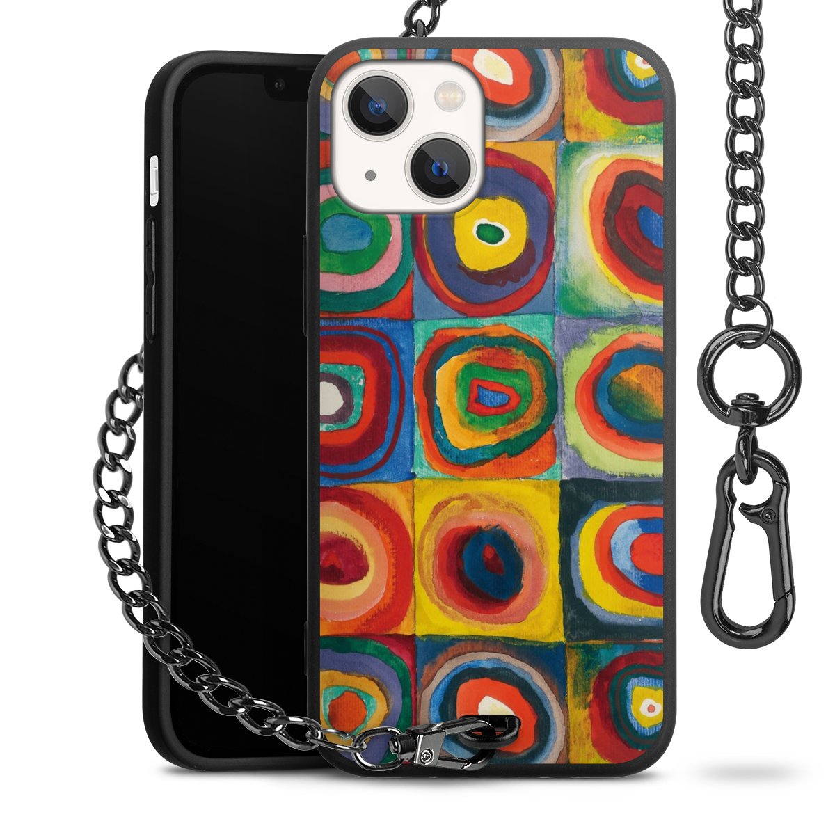 • Mattschwarze Handyhülle mit Metallkette